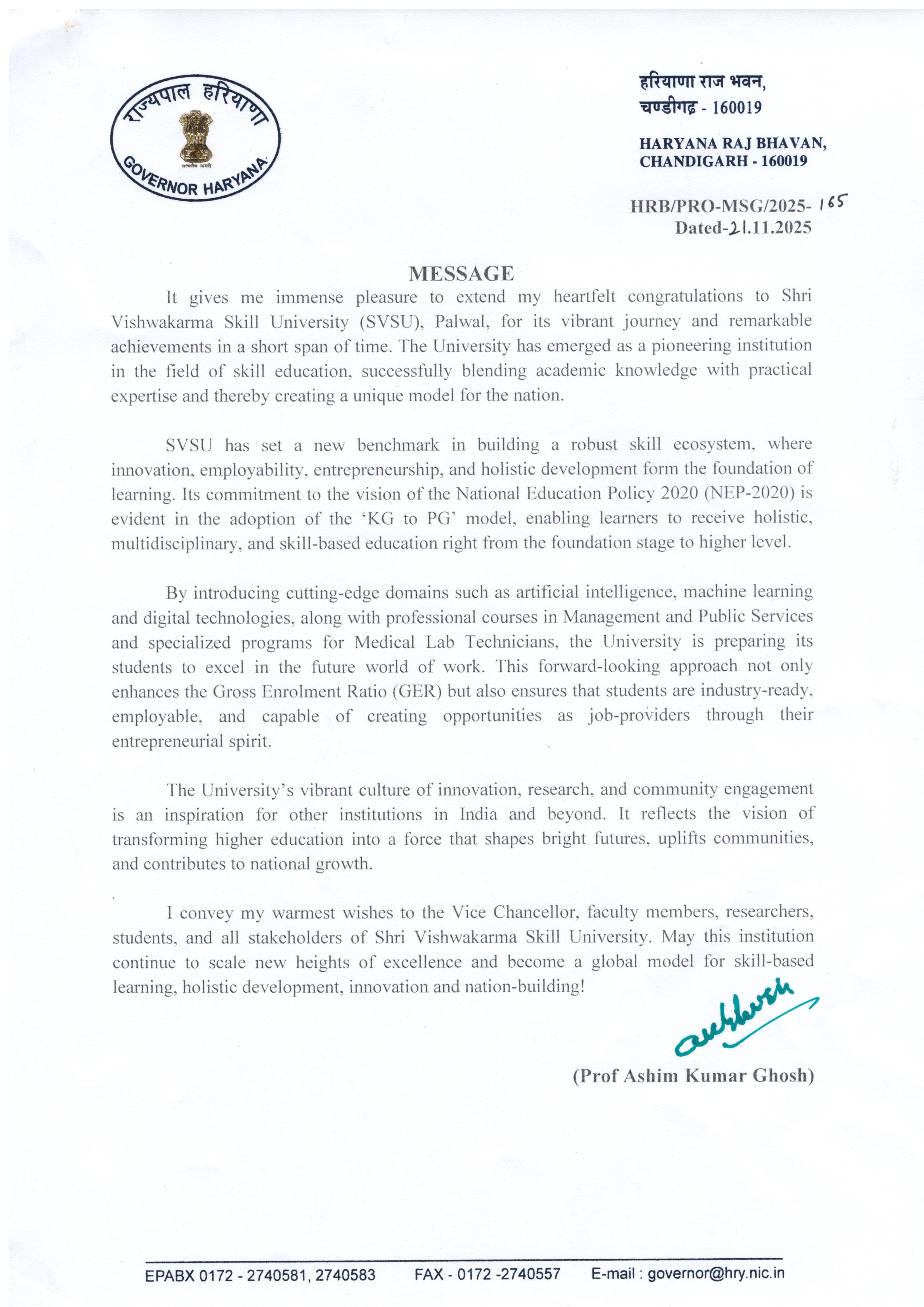 Hon'ble Chancellor & Governor Haryana